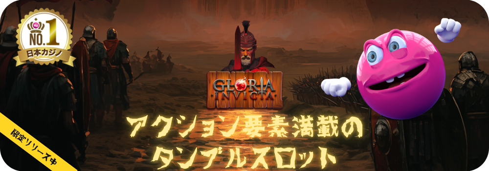 古代ローマの軍団が戦場を進む壮大な世界観!グロリア・インヴィクタは、三人の勇猛なコマンダーが率いる精鋭部隊とともに要塞を攻略していく、アクション要素満載のタンブルスロットです。